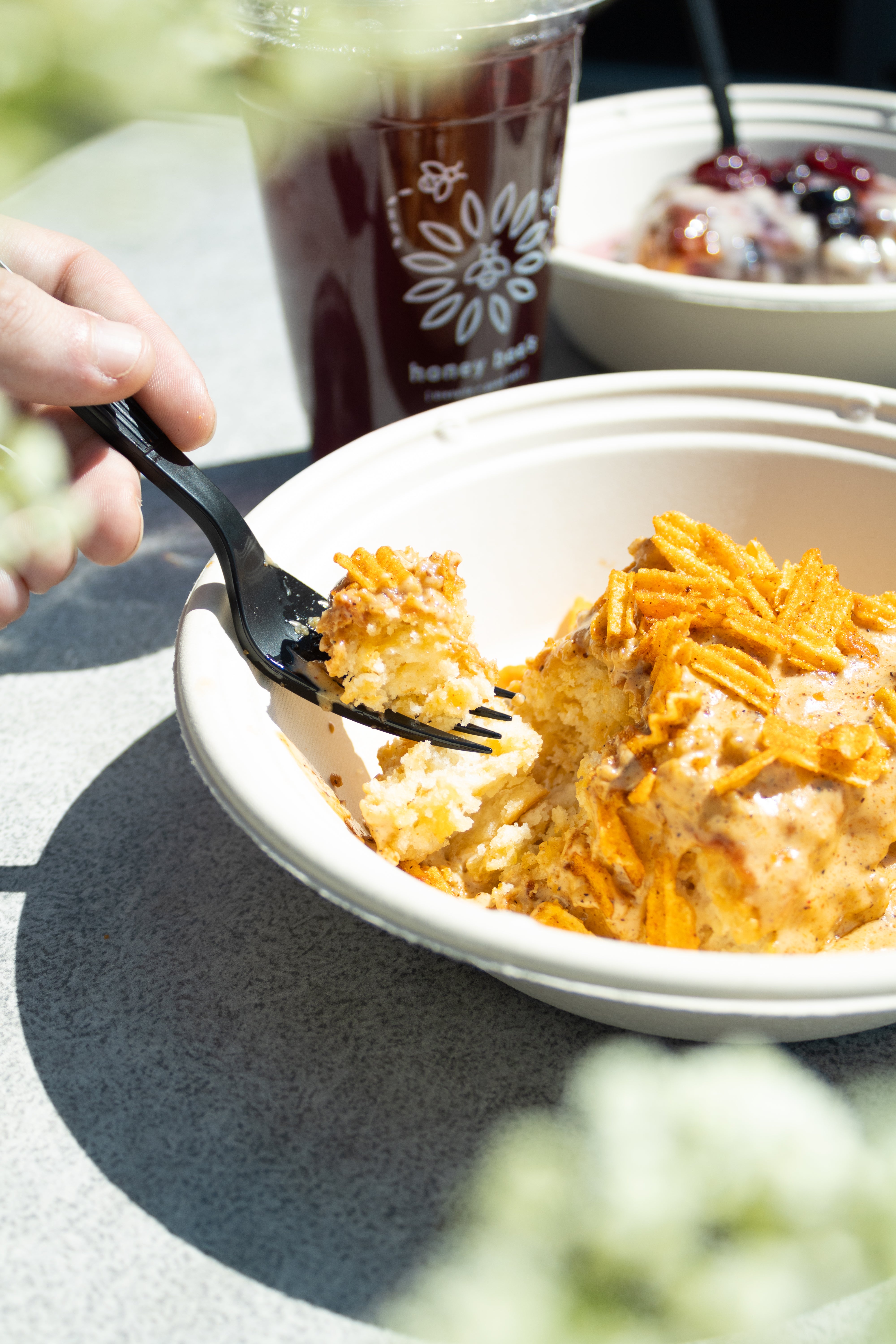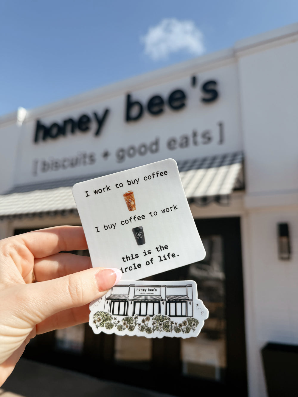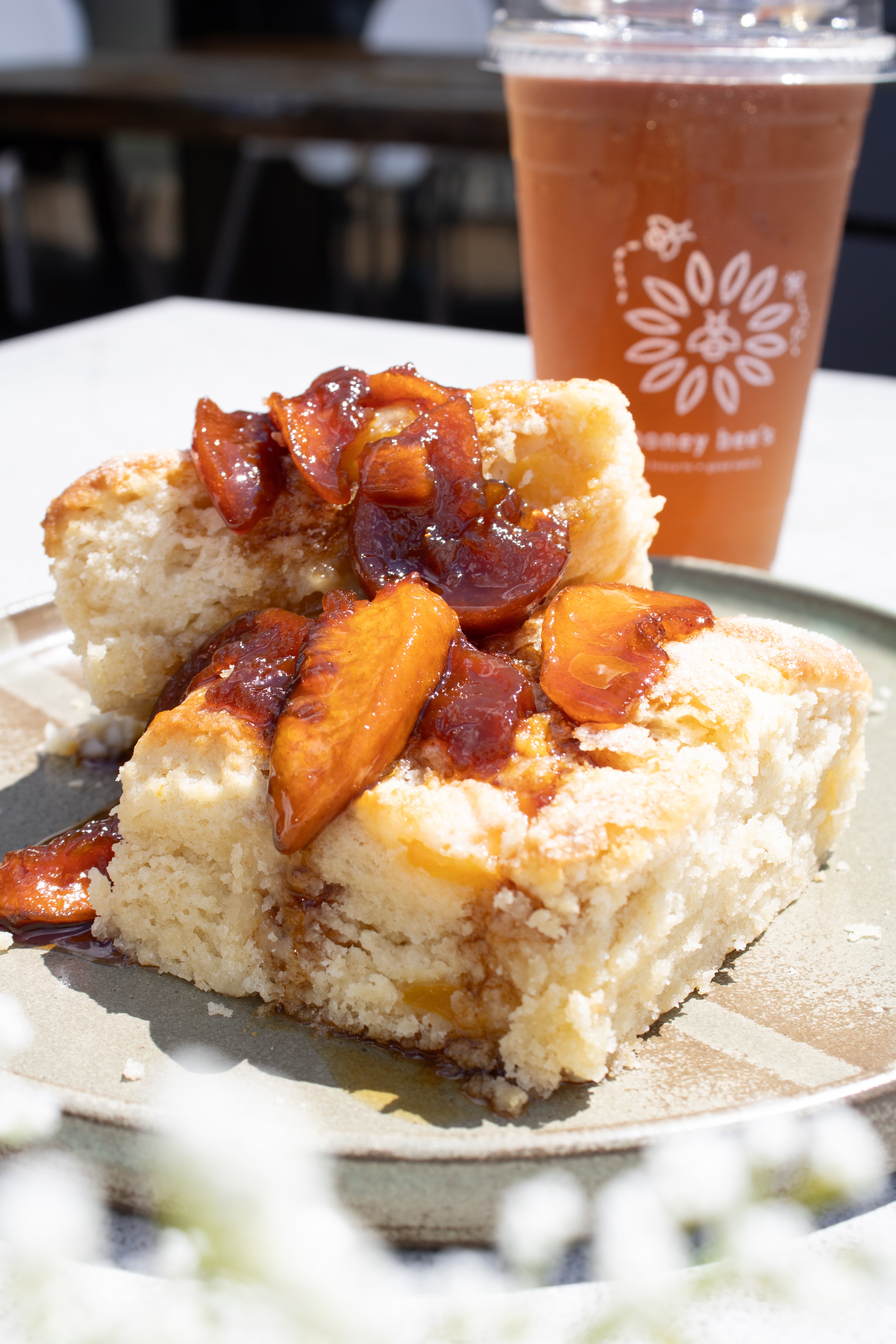 We got Bee Kind coffees which were perfection. I got directions on reheating biscuits at home, so I took the blueberry biscuits to my husband and man, those stole the show. I'd go back for those alone. This looks like a great place for outdoor hangs though in the summer. Tons of seating.